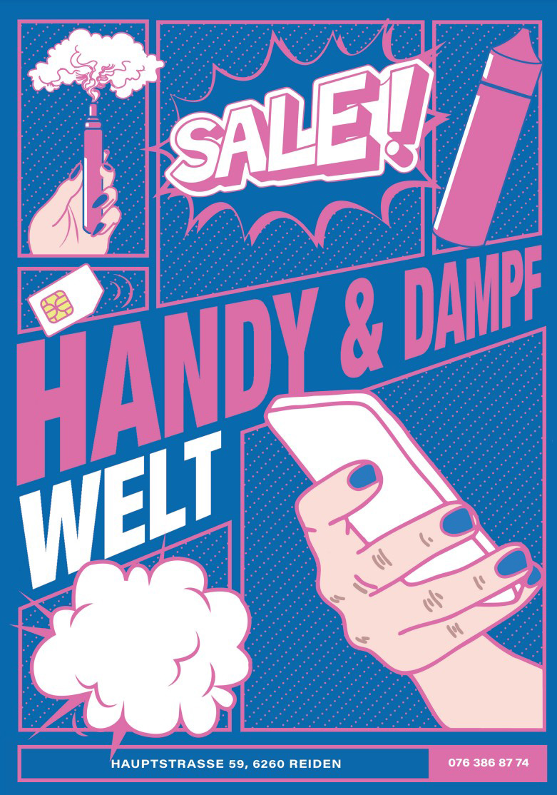 Für einen lokalen Shop Namens Handy und Dampfwelt, durfte ich einen Flyer erstellen um die aktuellen Angebote zu zeigen.